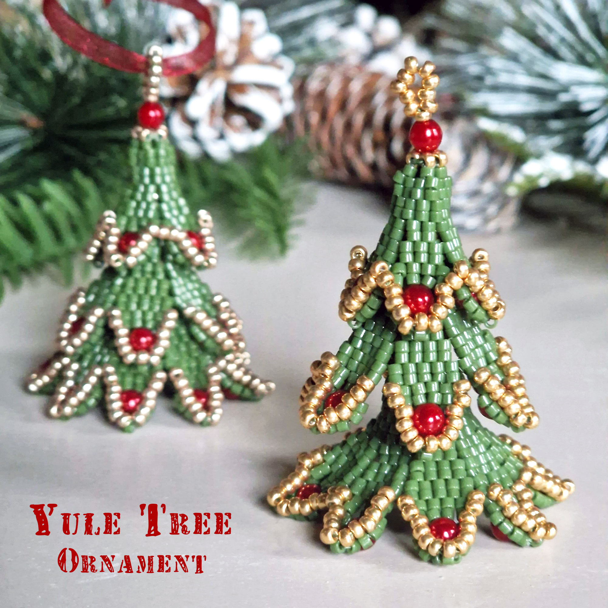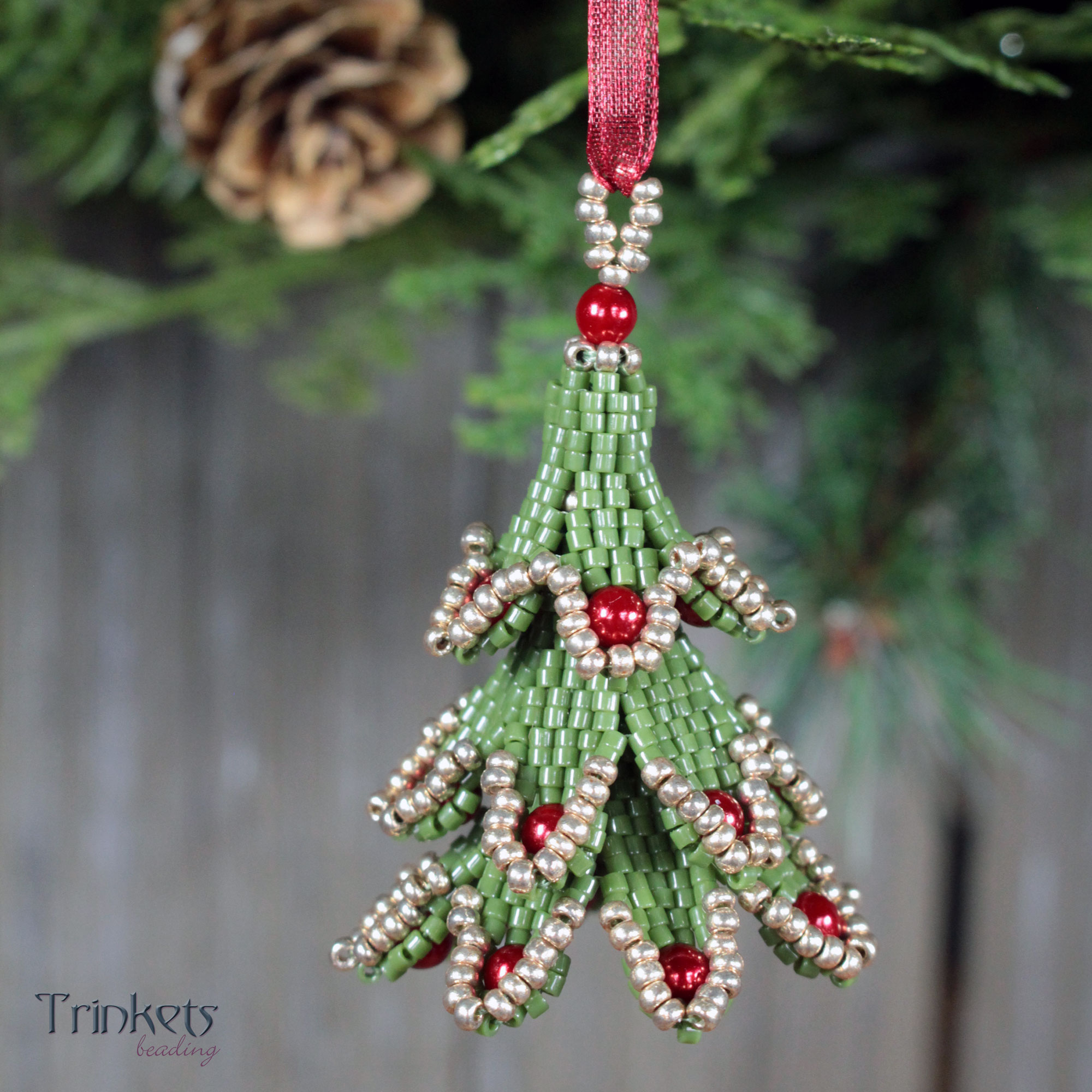 Kerstboom decoratie hanger, gemaakt met 2-drop peyote.